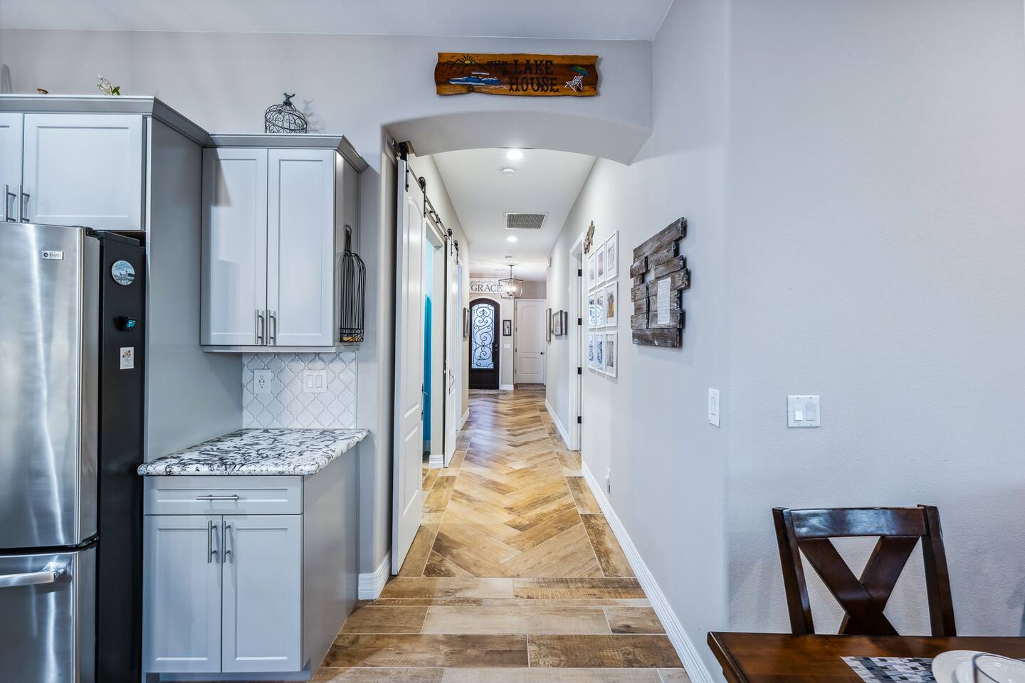 Entire house is accessible to the guests except for the RV garage, kitchen pantry, and the refrigerator and brown cabinet in the laundry room.