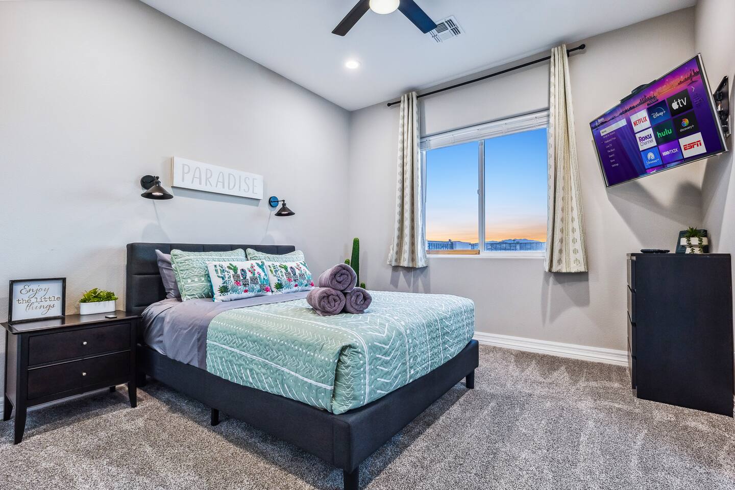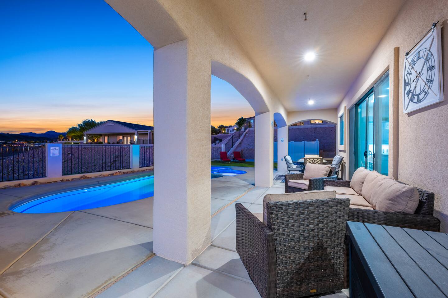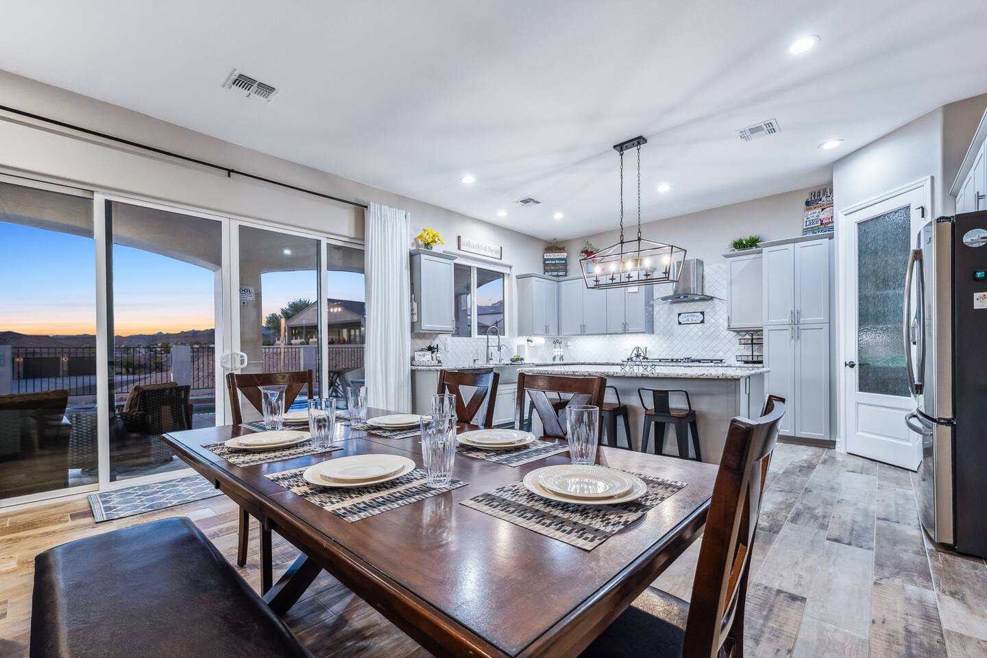 Please read the additional rules before booking. PETS Dogs are allowed with a two pet max. Pet is $250 per pet. We require them not to be left unattended unless crated. No pets on the furniture and any hair/waste is picked up. We have a large kennel for you to use! POOL/SPA The pool is not heated at this time. The spa heating is available any time between 7 AM - 10 PM for $50/5-hour. Send us your requested date and time for spa heating. Spa heating will begin 30-minutes prior to your requested time for warm-up. PARKING You're welcome to use the driveway to park. The garage is not available for use at this time. Please park all vehicles on the driveway. HOA rules states NO VEHICLES ARE ALLOWED TO PARK ON THE STREET over night. QUIET HOURS Quiet hours from the city begin at 10pm until 7am every day. OCCUPANCY For our short term rental permit with the city of Fort Mohave, UNDER NO CIRCUMSTANCES can there be more than 12 people on the property at ANY given time. The reservation will be cancelled with NO refunds. Upon booking to rent and stay at this property, I agree on my own behalf, my family, any and all guests, and invitees that I am fully responsible for any and all risks of injury or death. I hereby release and hold harmless the property owner and its members, principals, agents, officers, employees, and representatives (collectively “Releasees”) as well as the owner of the property.