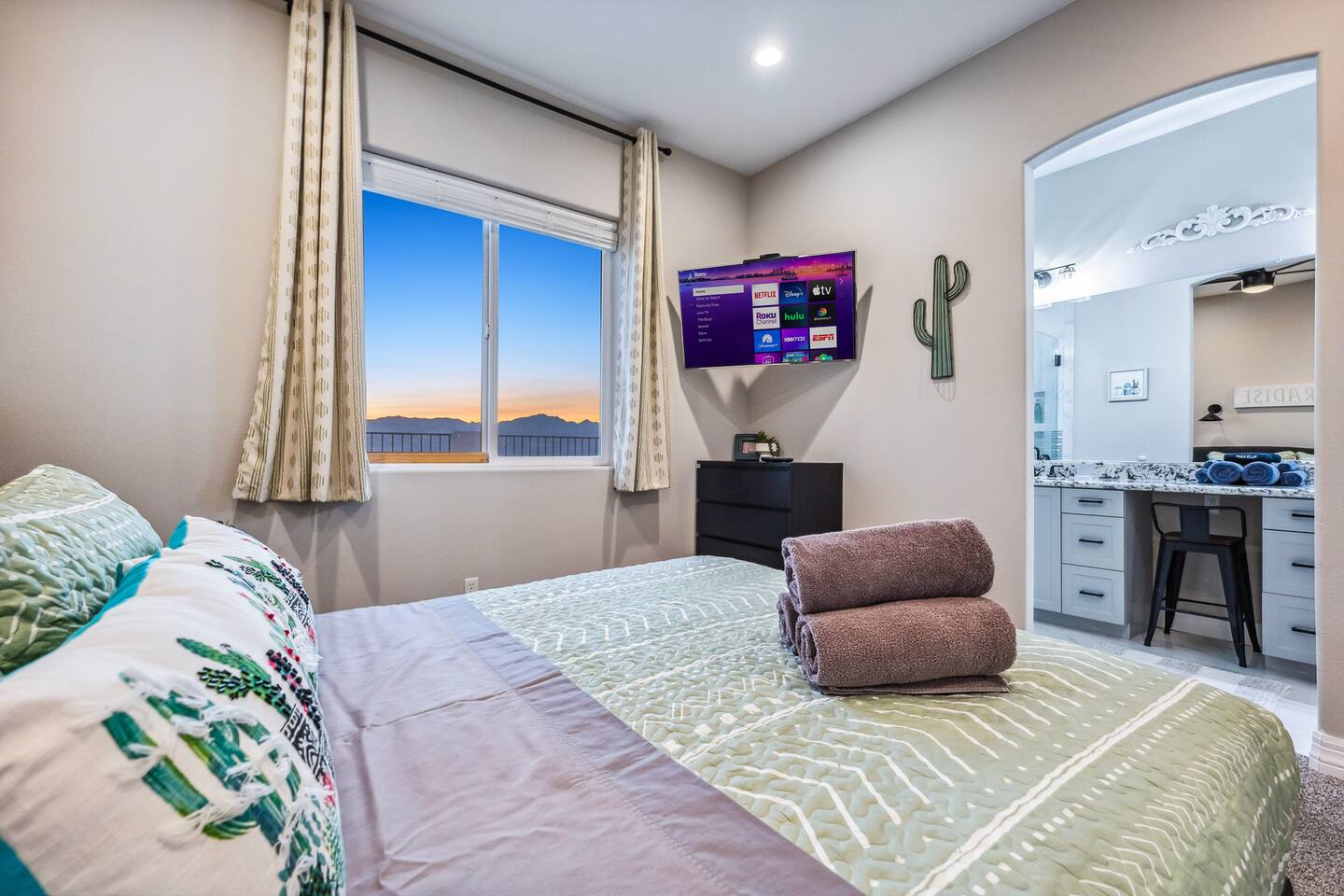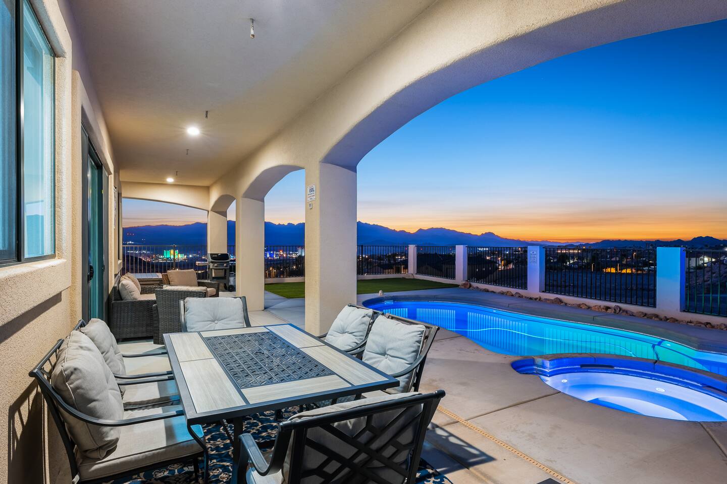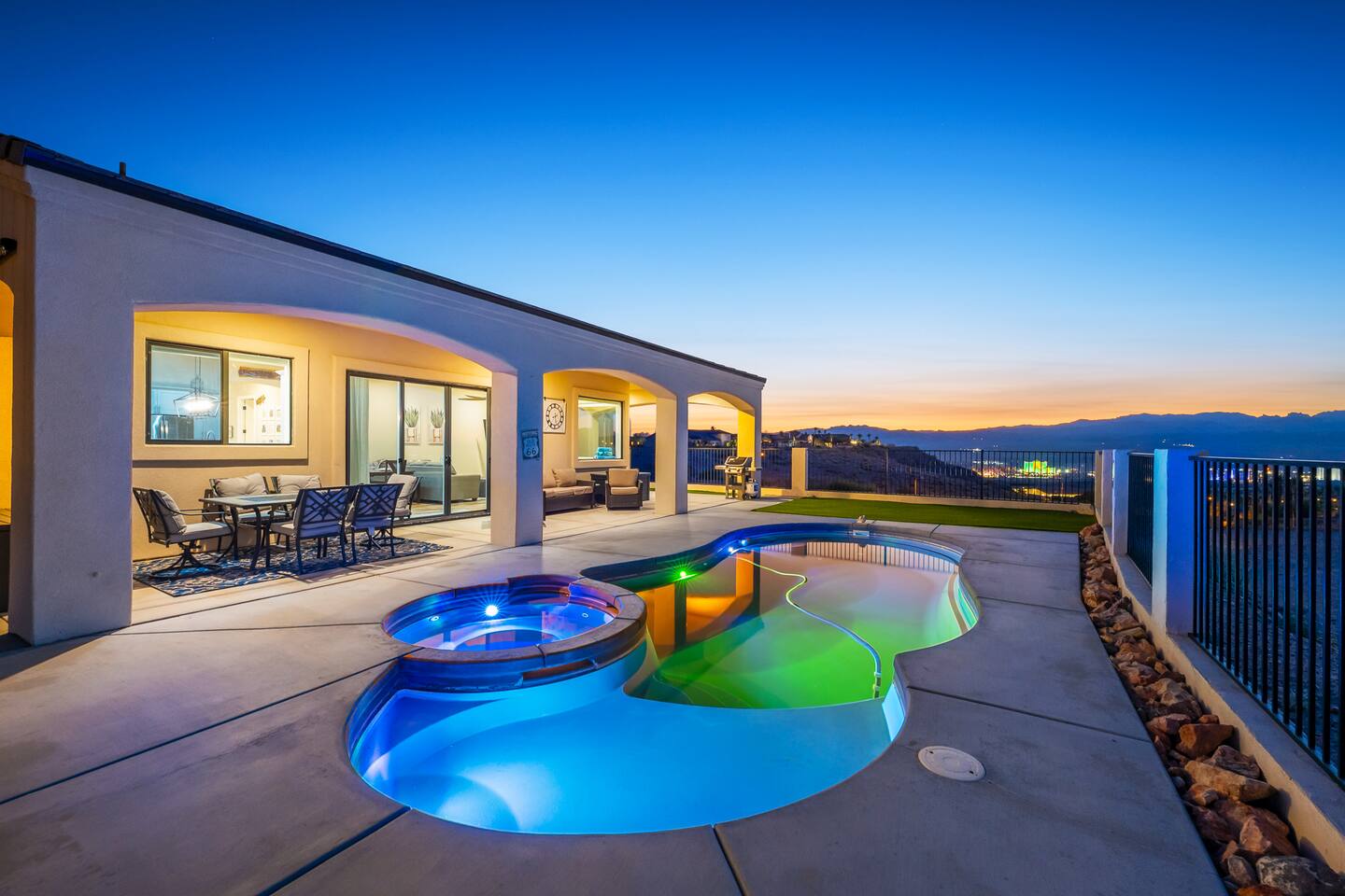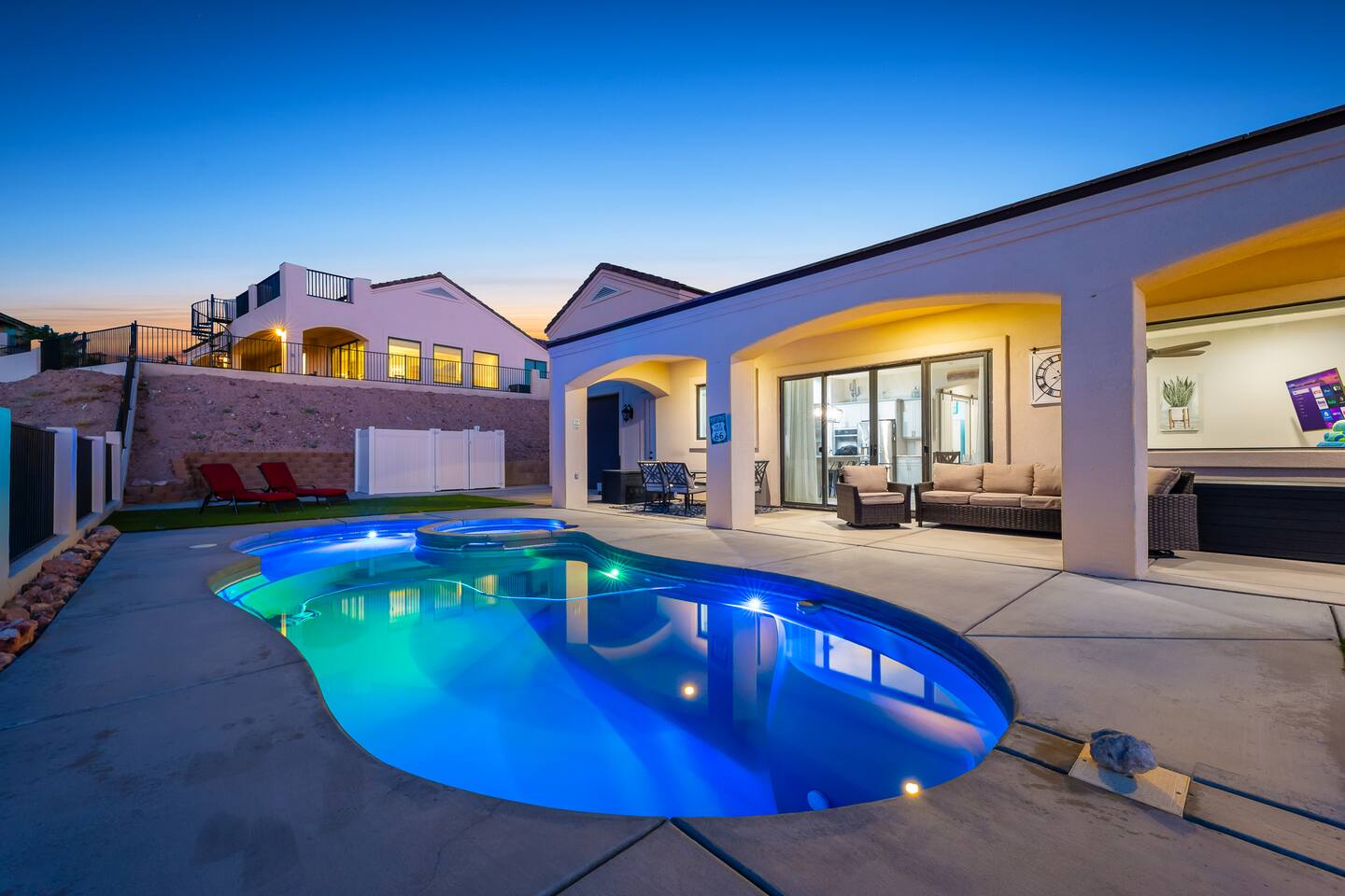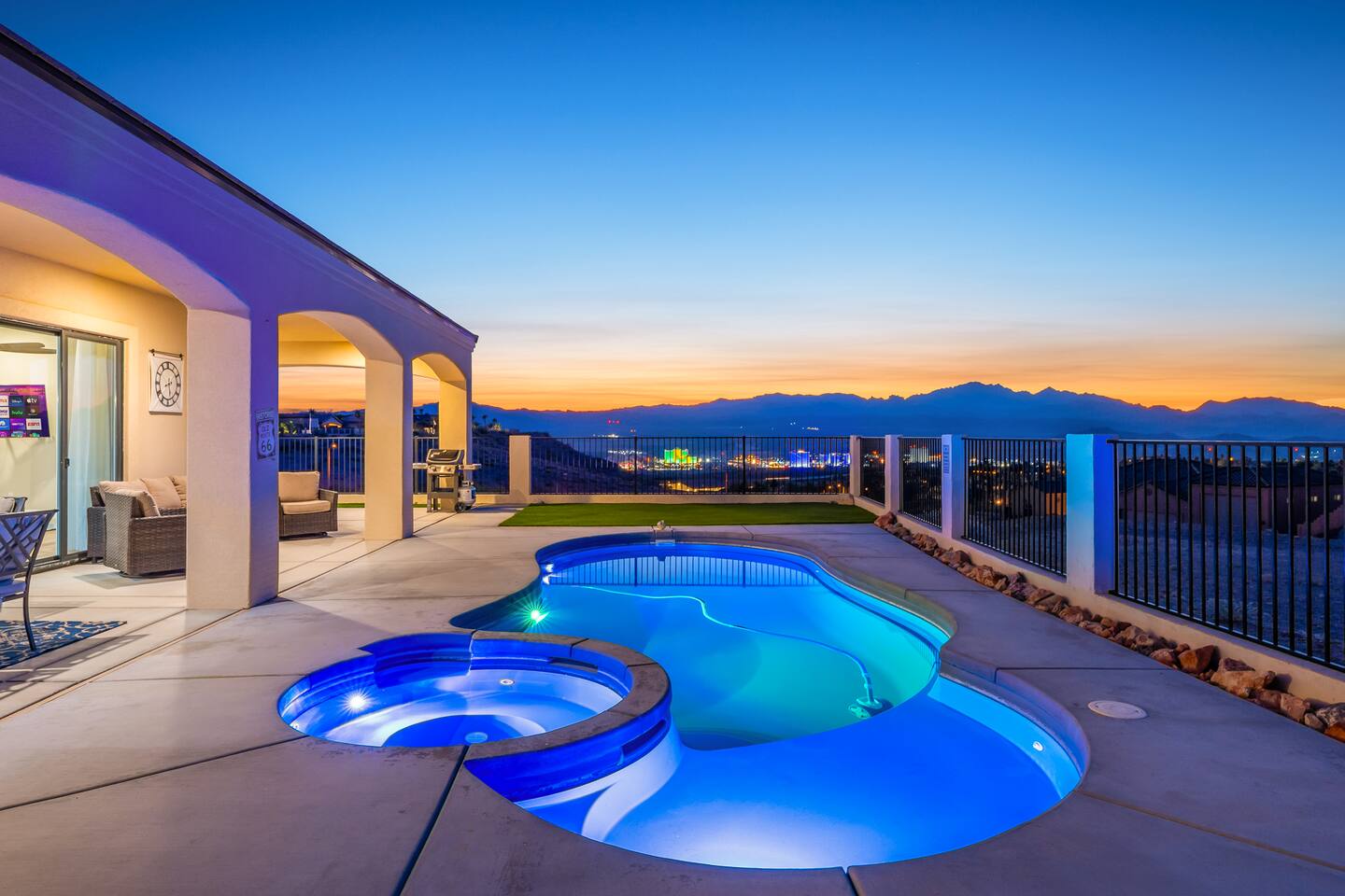 Welcome to Sunny Dayz – your dream escape in Bullhead City, AZ! This 4-bedroom vacation oasis offers a sparkling pool, relaxing spa, game room, chef-style kitchen, and incredible views of the Laughlin Strip, Lake Mohave, and Davis Dam. Perfect for families or groups, with comfy beds, BBQ grill, open living space, and epic sunsets. Just minutes from casinos, Katherine’s Landing, and the Colorado River. Relax, recharge, and make the most of your Sunny Dayz!